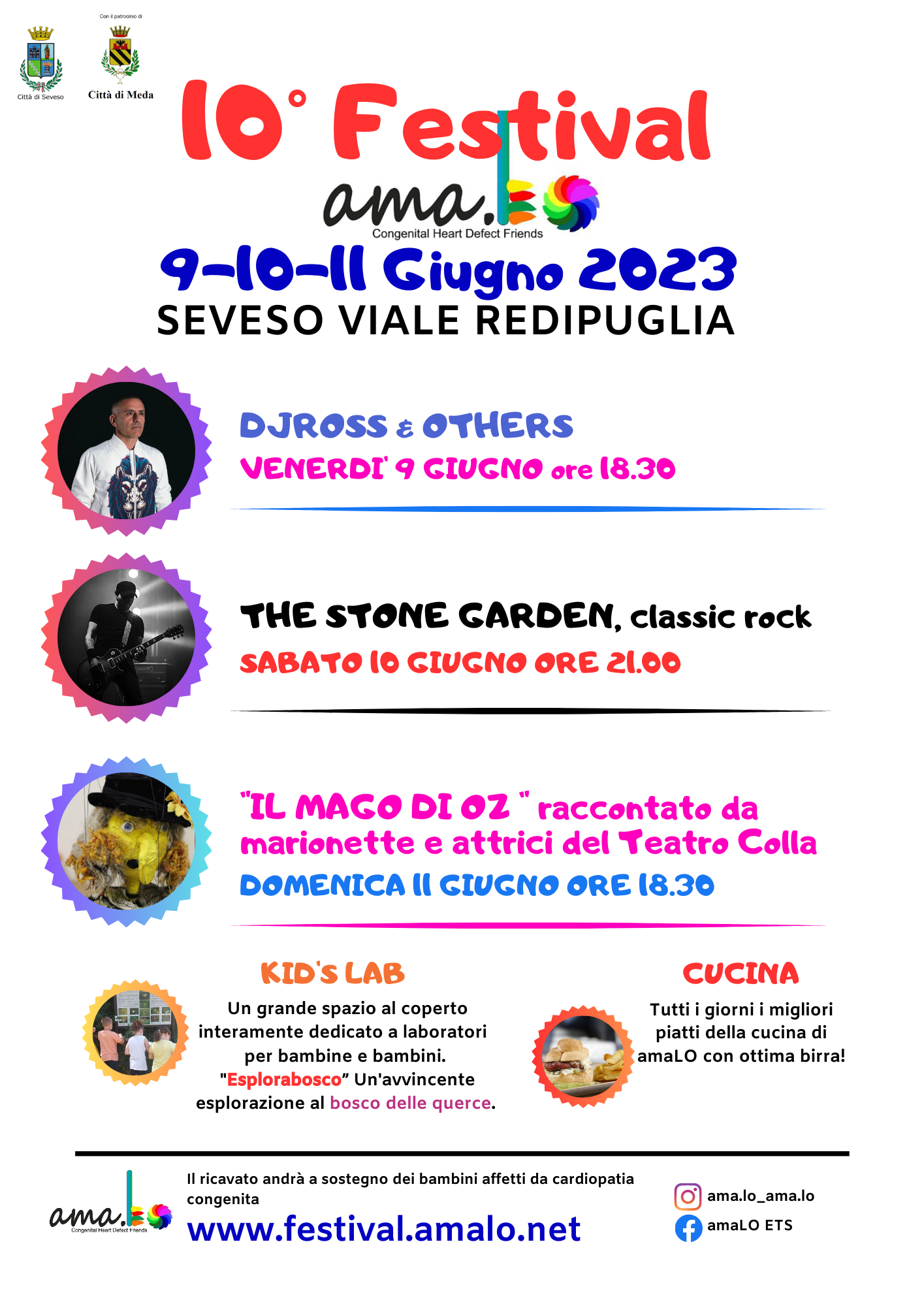 Con deliberazione n. 102 del 22.05.2023 è stato concesso il patrocinio all'associazione Amalo per la realizzazione dello spettacolo "10° Festival ama.Lo " in programma dal 09 all' 11giugno 2023 presso il Centro polifunzionale di Seveso.