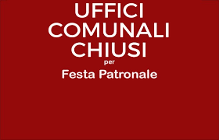 Gli uffici comunali resteranno chiusi nella giornata di VENERDI' 8 SETTEMBRE 2023 per la festa patronale di Santa Maria Nascente