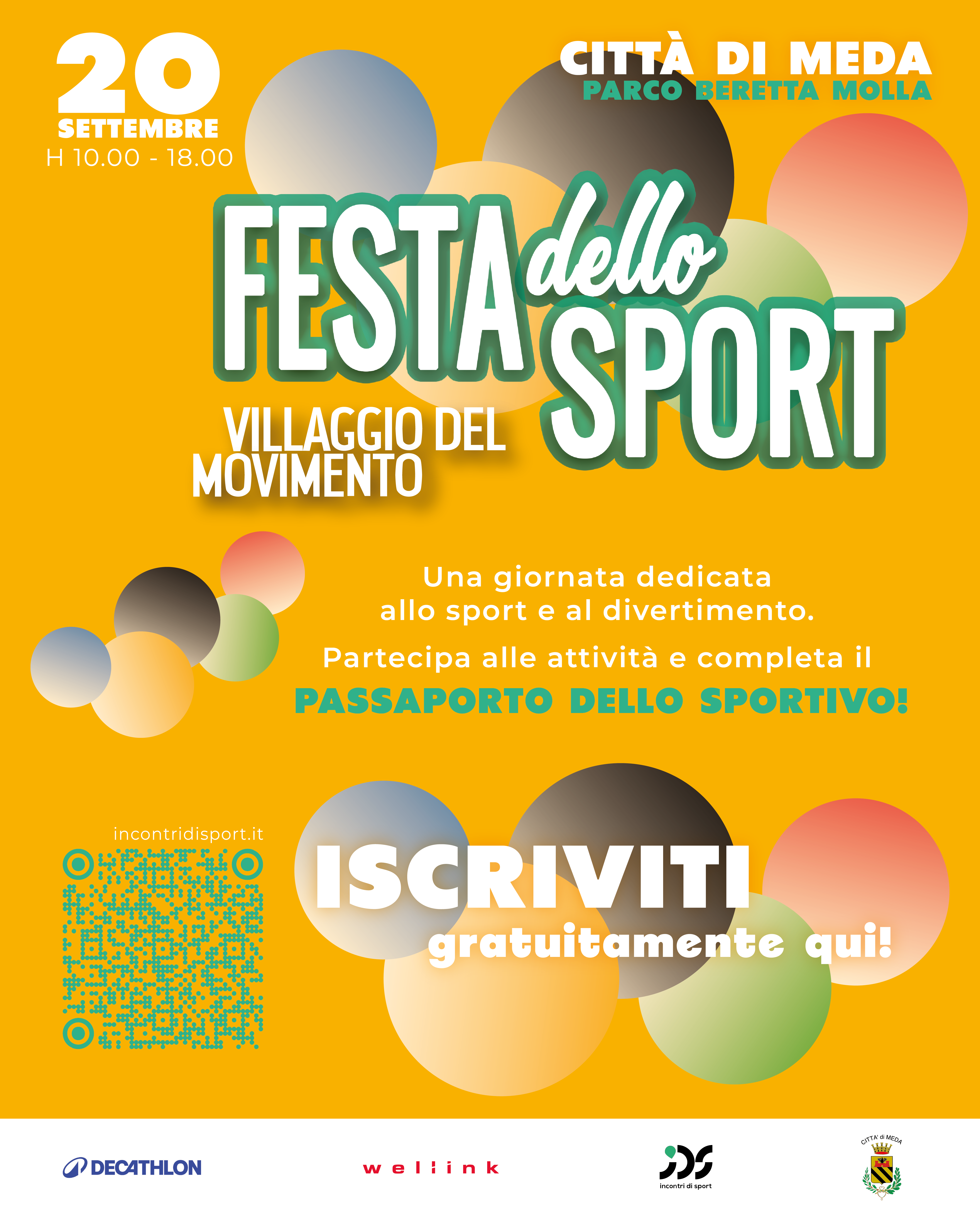 Sabato 20 settembre, dalle ore 10 alle ore 18 ca, Meda ospiterà una giornata speciale dedicata allo sport e al movimento per i più giovani e le loro famiglie, presso il Parco Beretta Molla (in caso di maltempo al Palazzetto dello Sport Palameda).