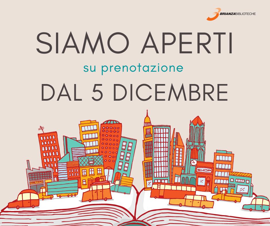 • La Medateca riapre mercoledì 09.12.2020 per prestito, su appuntamento, e restituzione, senza appuntamento, nell’atrio d’ingresso, da martedì a sabato 10-12.30 e 14.30-18.30 (venerdì mattina chiuso).