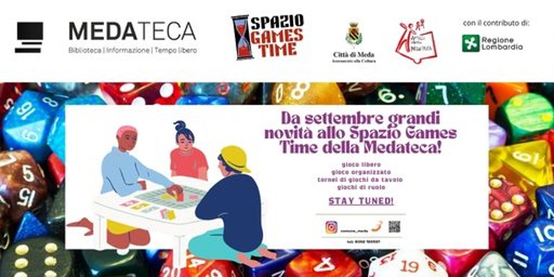 Lo spazio Games Time è un'area riservata all'organizzazione di attività specifiche, di volta in volta pensate per coinvolgere i teen-agers in proposte collaborative e di aggregazione positiva, consapevoli che il gioco in biblioteca possa costituire un importante strumento per migliorare le competenze individuali e collettive e consentire l’incontro con nuove persone, in un ambiente piacevole.