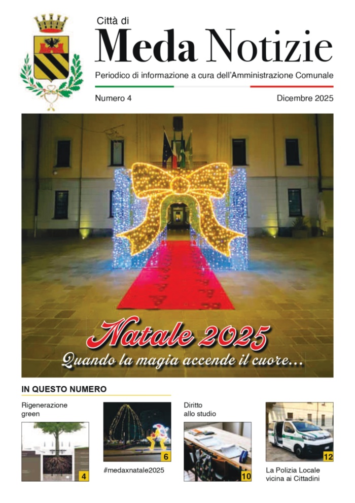 Qualora non aveste ricevuto il periodico, vi invitiamo a segnalarcelo scrivendo alla mail: comunicazione.istituzionale@comune.meda.mb.it oppure a ritirare la vostra copia presso il Comune di Meda.