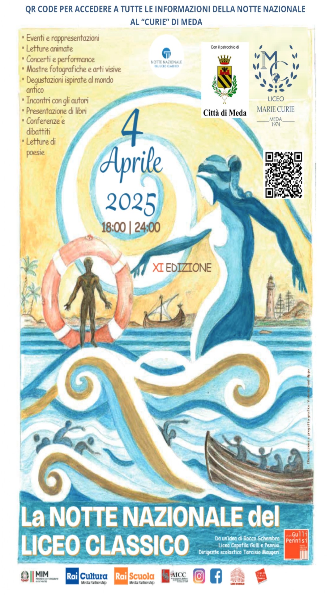 Venerdì 4 aprile 2025 dalle ore 18.00 alle ore 24.00 presso la sede del Liceo Classico Marie Curie, in contemporanea con altri licei classici presenti sul territorio nazionale, si celebra la Notte Nazionale del Liceo classico