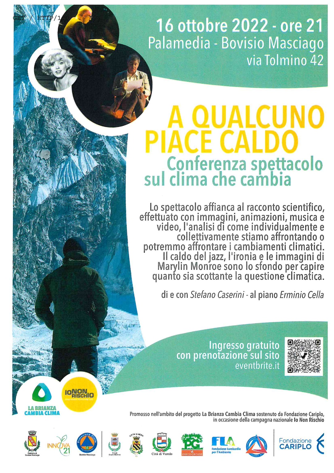Uno spettacolo che affianca al racconto scientifico, effettuato con immagini, animazioni, musica e video, l'analisi di come individualmente e collettivamente stiamo affrontando o potremmo affrontare la questione climatica. Il caldo del jazz, l'ironia e le immagini di Marylin Monroe sono lo sfondo per capire quanto sia scottante il tema dei cambiamenti climatici. Ideato e interpretato da Stefano Caserini, titolare del corso di Mitigazione dei cambiamenti climatici al Politecnico di Milano e autore di numerose pubblicazioni scientifiche e divulgative. Ad accompagnarlo al pianoforte ci sarà Erminio Cella.