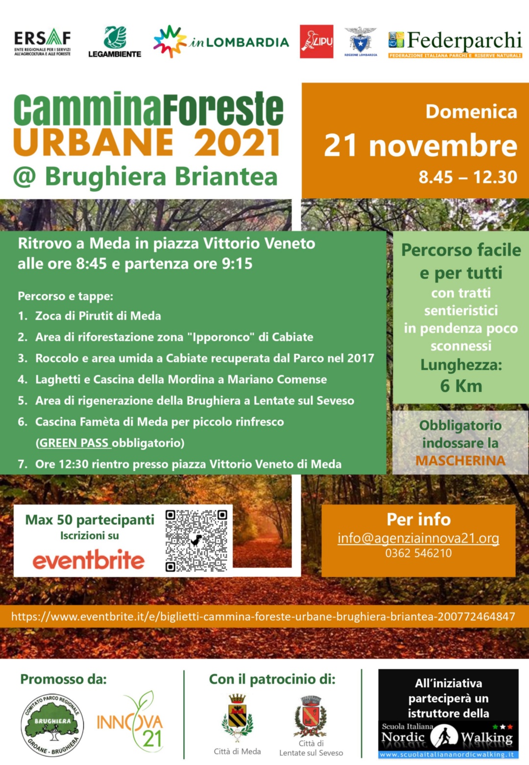 percorso facile, per tutti, della lunghezza di 6 km all'interno del Parco della Brughiera Briantea