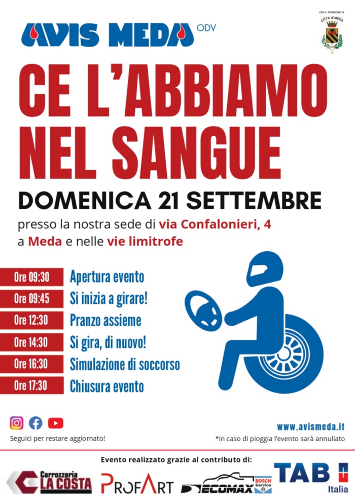 Domenica 21 settembre 2025 ritorna la festa “Ce l’abbiamo nel sangue”!