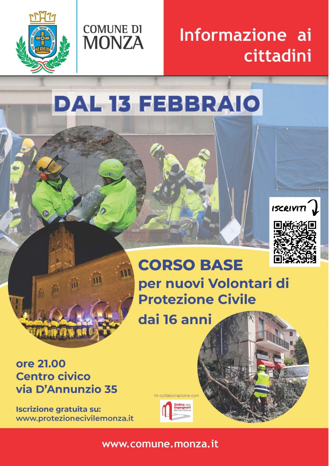 Sono aperte le iscrizioni al nuovo corso di formazione per aspiranti Volontari di Protezione Civile organizzato dal Comune di Monza Servizio di Protezione Civile.