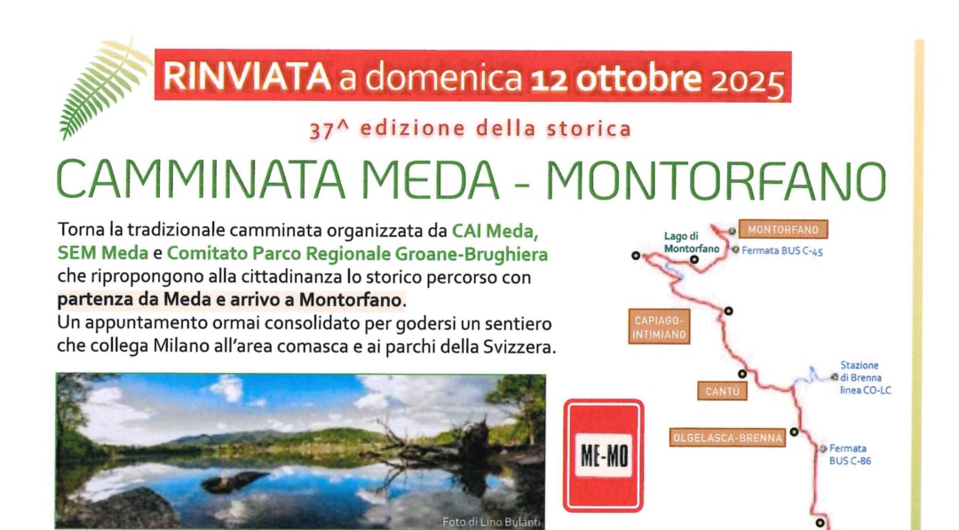 Cai Meda, S.E.M.Meda e il Comitato Parco Regionale Groane-Brughiera ripropongono l'imancabile camminata attraverso la brughiera con partenza da Meda e arrivo a Montorfano.