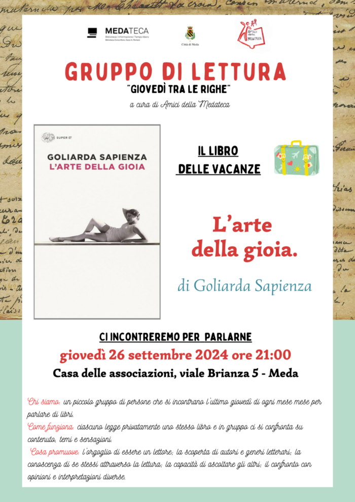 Il libro scelto per il mese di Settembre è "L'arte della gioia" di Goliarda Sapienza