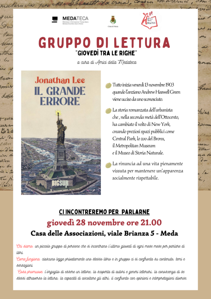 Il libro scelto per il mese di novembre è "Il grande errore" di Jonathan Lee