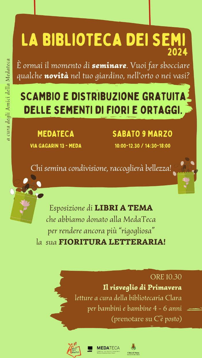 Con lo slogan "Chi semina condivisione, raccoglierà bellezza", gli Amici della Medateca organizzano la "Giornata di distribuzione o scambio dei Semi Condivisi", nell'ambito della 2° edizione di La Biblioteca dei Semi.