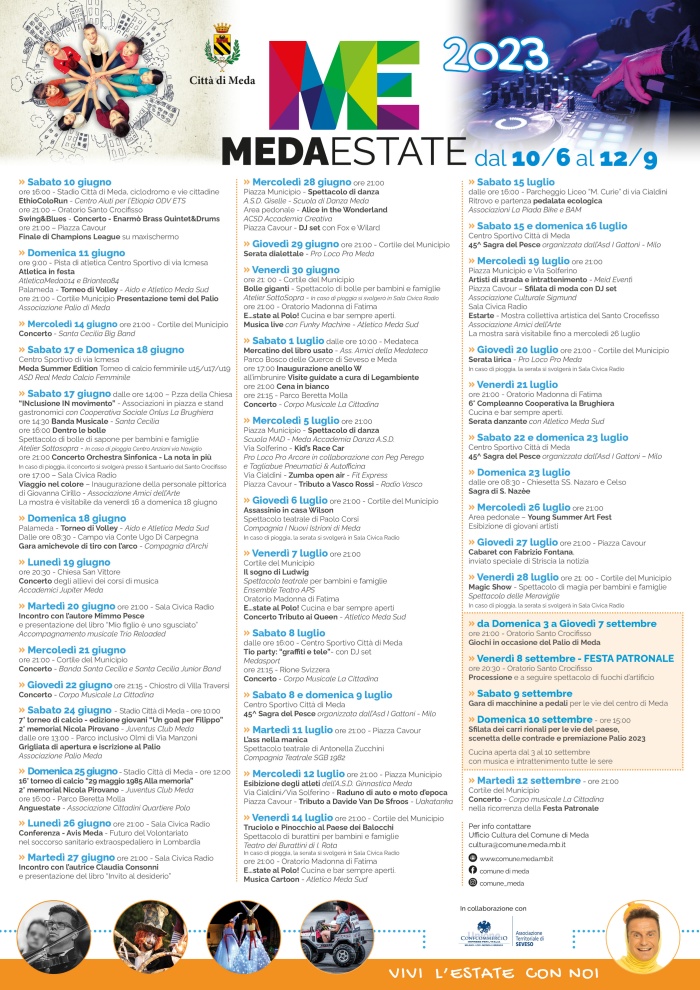 Non resta che seguire tutti gli aggiornamenti e i dettagli dei singoli appuntamenti sui canali di comunicazione del Comune…e buona MEDAestate a tutti!