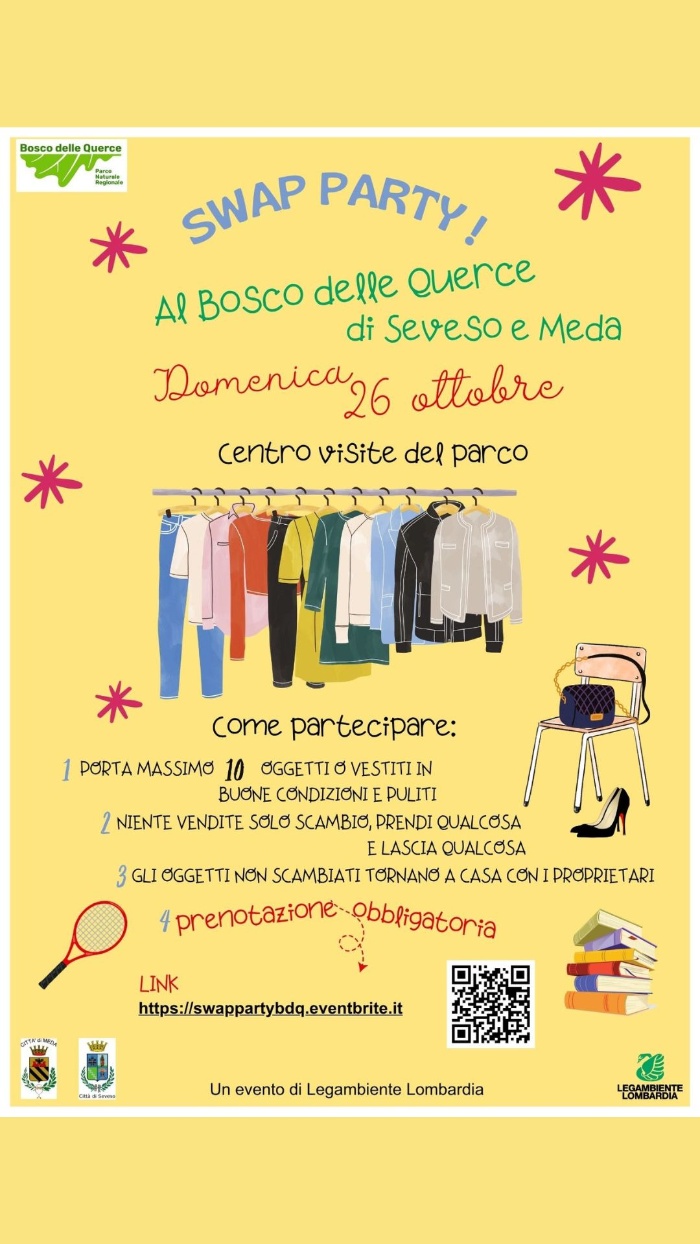Uno swap party è un evento sociale e “circolare” in cui i partecipanti scambiano oggetti usati, tipicamente abiti, accessori, libri e articoli per la casa, senza alcun costo e senza usare denaro dando così nuova vita agli oggetti e offrendo un’alternativa sostenibile alla “fast fashion”.