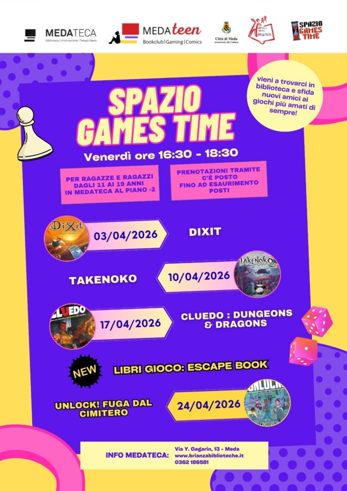 Il primo appuntamento, per ragazze e ragazzi da 11 a 19 anni, si svolgerà venerdì 03 aprile dalle ore 16:30 alle ore 18:30, al piano -2 della Medateca, presso lo Spazio Games Time, con Dixit.