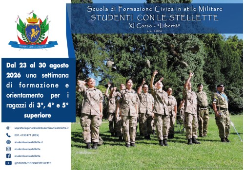XI° Corso "Libertà" 2026: progetto “Studenti con le Stellette” dal 23 al 30 agosto 2026 presso la sede dell’Università eCampus di Novedrate (CO).