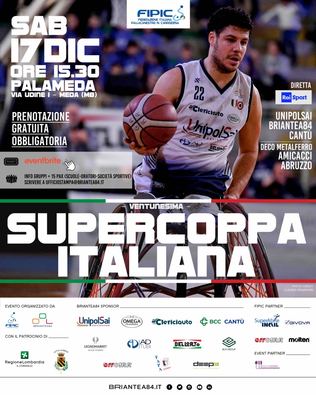 Sabato 17 dicembre 2022 alle ore 15:30 il Palameda ospiterà la XXI edizione della Supercoppa Italiana di basket in carrozzina organizzata dalla FIPIC.