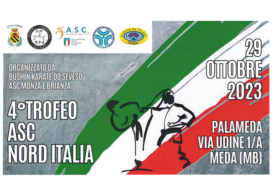 Domenica 29 ottobre 2023 il Palameda ospiterà il 4° Trofeo ASC Nord Italia organizzato dal Bushn Karate Do Seveso - ASC Monza e Brianza e patrocinato dal Comune di Meda.