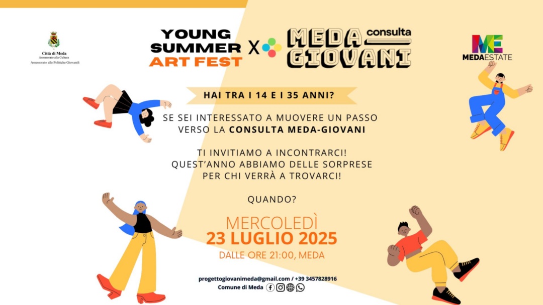 In occasione dello Young Summer Art Fest, la Consulta Meda Giovani invita tutti i ragazzi dai 14 ai 35 anni a passare dallo stand informativo per scoprire le attività, i progetti futuri e qualche sorpresa pensata appositamente per l’occasione.
