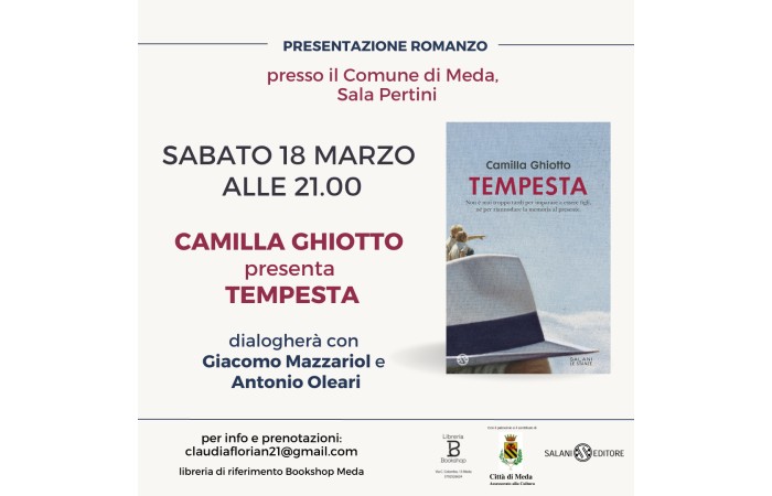 “Tempesta”, candidato al Premio Strega 2023, di Camilla Ghiotto con Giacomo Mazzariol e Antonio Oleari, il 18 marzo 2023 presso Sala Pertini, Comune di Meda alle ore 21:00.