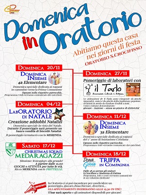 Evento a cura della Comunità Pastorale "Santo Crocifisso" sabato 17 dicembre ore 15:00 presso l'Oratorio Santo Crocifisso giochi e attività con il Meda Ragazzi merenda con le frittelle