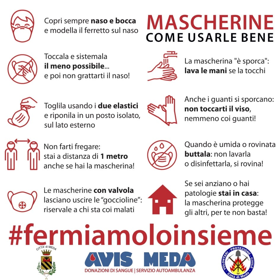 È enorme il mio ringraziamento a tutti i gruppi di volontari che hanno dato la disponibilità per la distribuzione delle mascherine ed all’AVIS Meda per la produzione dell’utilissimo volantino.