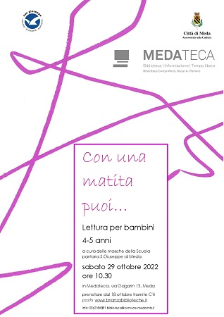 Lettura a cura delle maestre della scuola paritaria San Giuseppe di Meda Lettura per bambini di 4 e 5 anni Prenotazione obbligatoria, tramite app C'è Posto o dal sito BrianzaBiblioteche