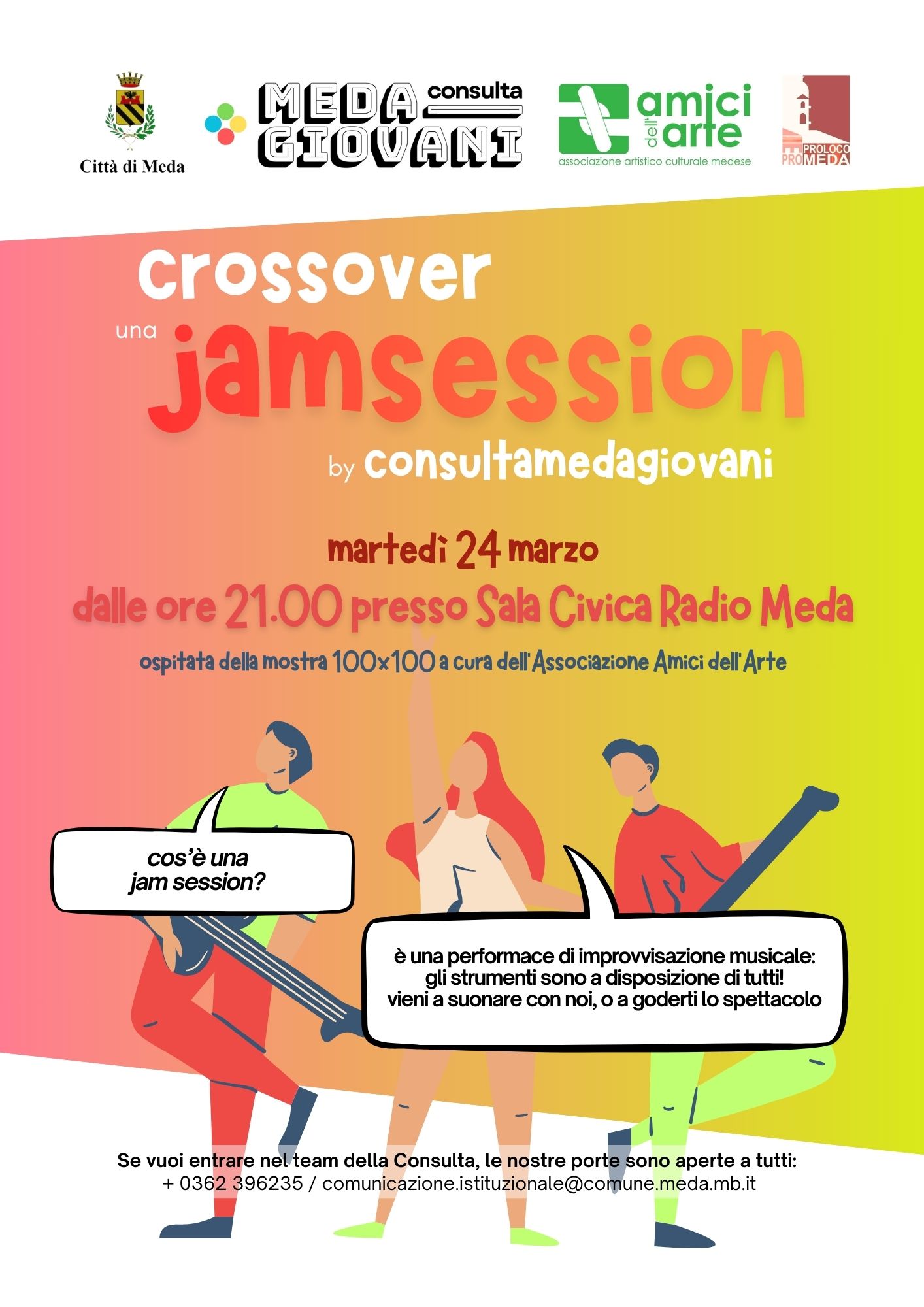 Martedì 24 marzo, a partire dalle ore 21:00, la Sala Civica Radio di Meda si trasforma in un palcoscenico aperto con "Crossover", una jam session dinamica organizzata dalla Consulta Meda Giovani.