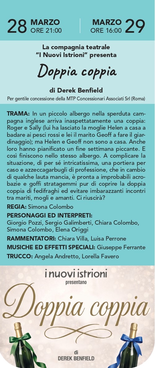 La compagnia teatrale "I Nuovi Istrioni" porta in scena a Meda "Doppia coppia", una brillante commedia di Derek Benfield per la regia di Simona Colombo.