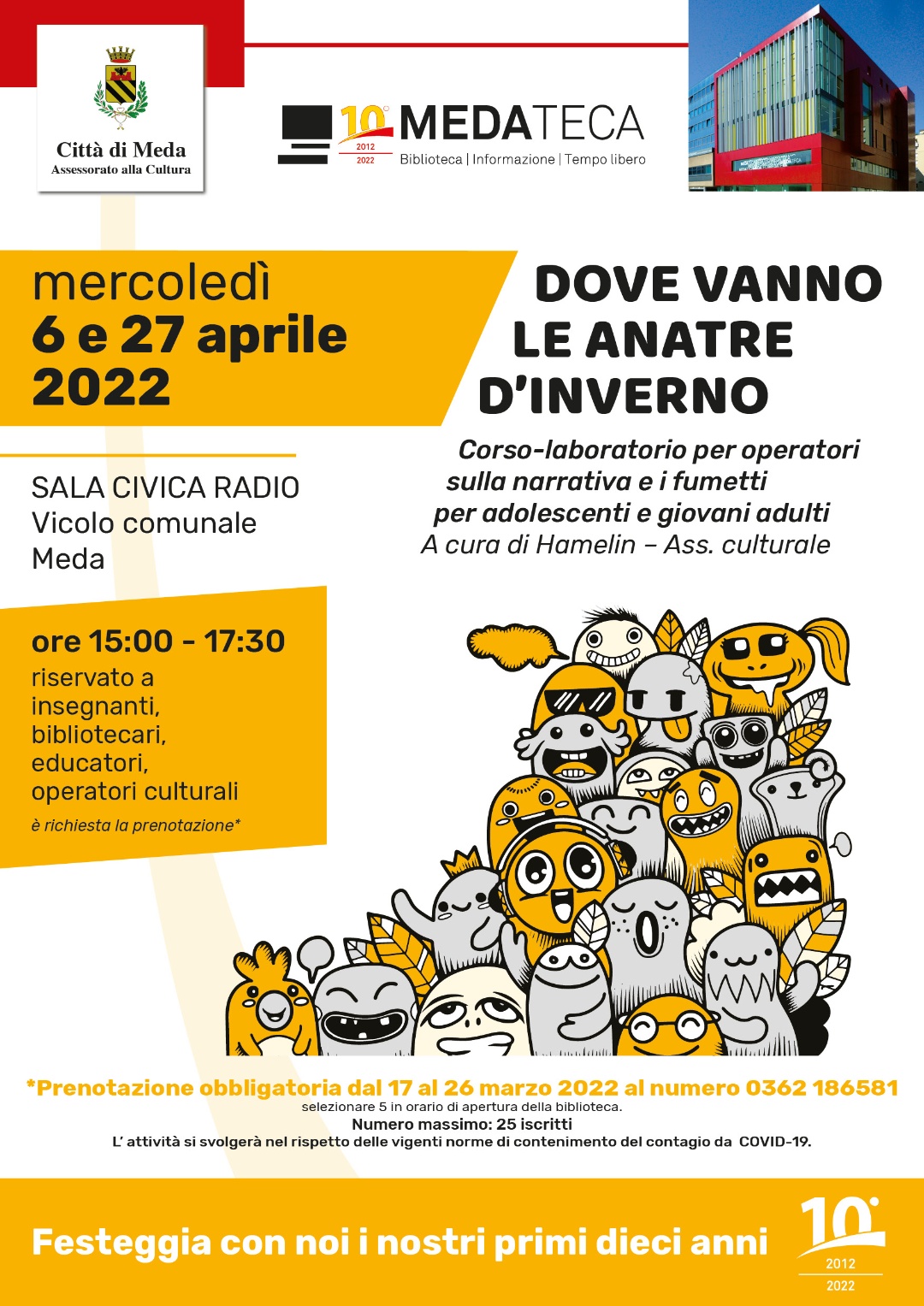 Prenotazioni dal 17 al 26 marzo 2022, telefonando al numero 0362 186581 e selezionando 5, in orario di apertura della biblioteca.