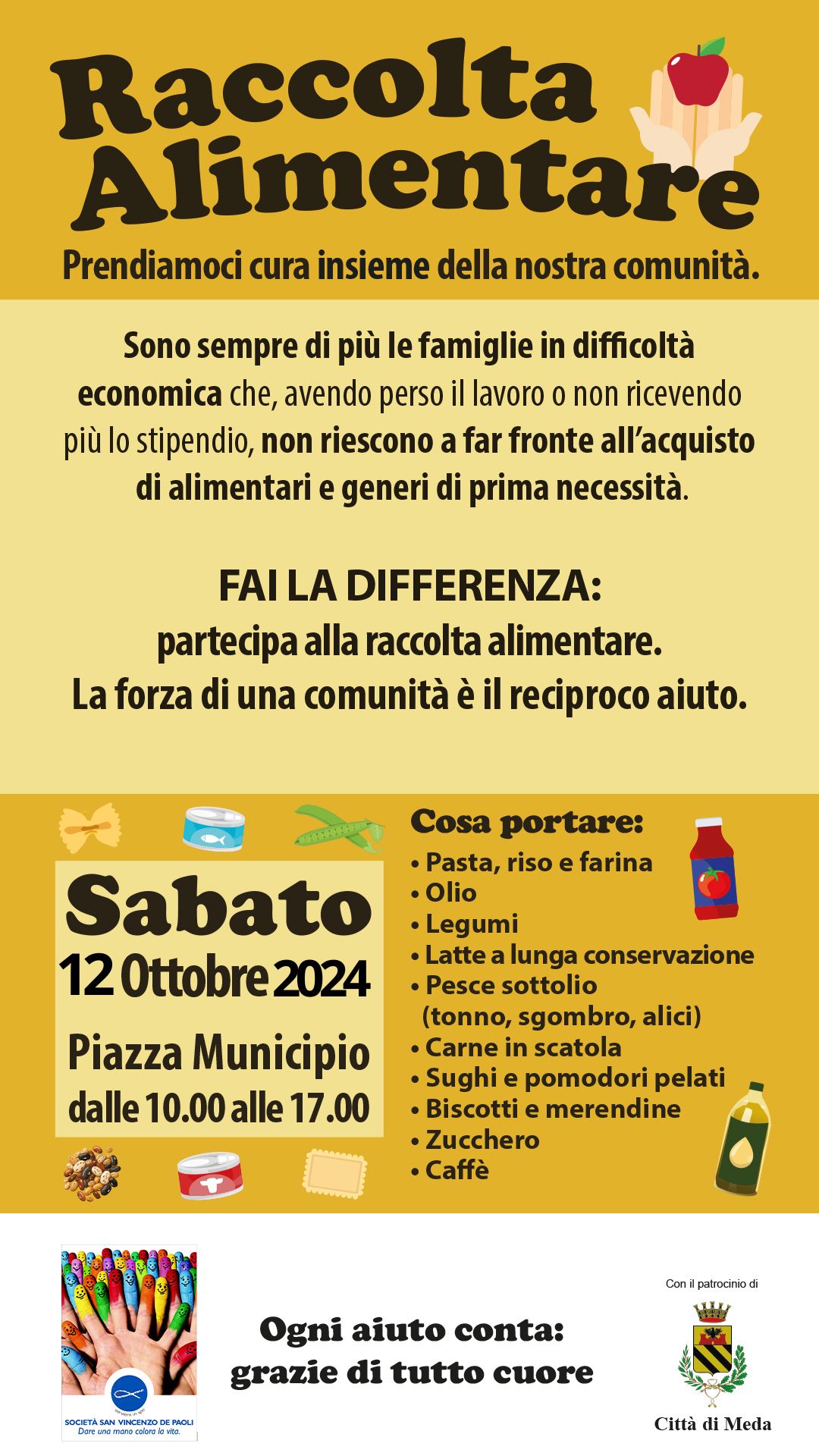 Per sostenere attivamente singoli e famiglie fragili la Conferenza San Vincenzo, con il Patrocinio del Comune di Meda, ha organizzato una raccolta di prodotti alimentari a lunga conservazione.