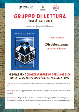 L'Associazione "Amici della Medateca" dà appuntamento a giovedì 27 aprile ore 21:00, presso la Casa delle Associazioni, per l'incontro mensile del gruppo di lettura "Giovedì tra le righe".
