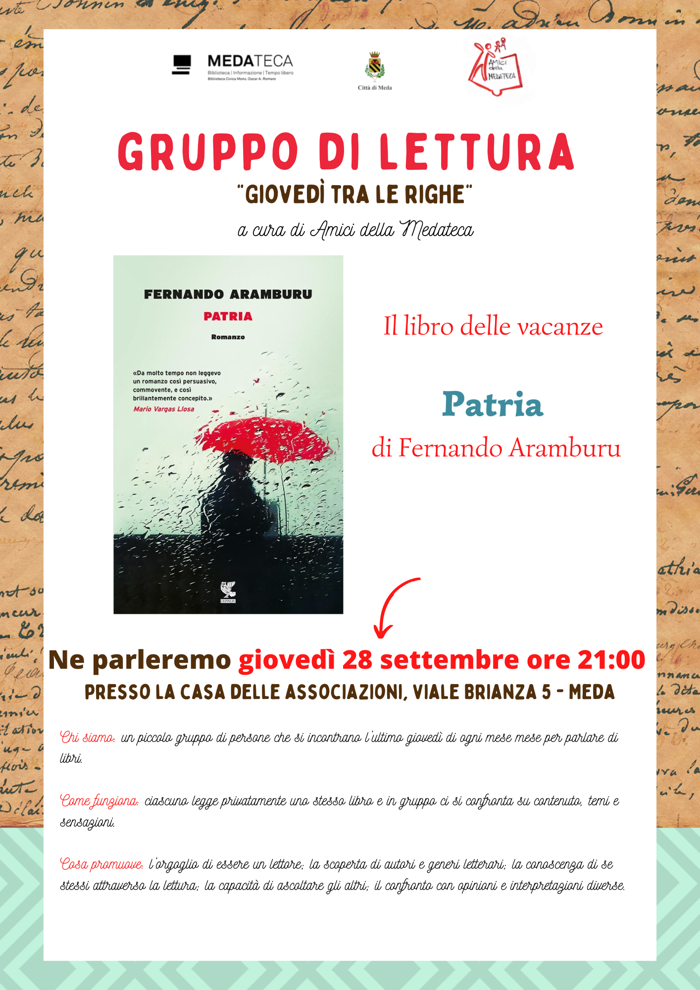 Il libro scelto per il mese di settembre è "Patria" di Fernando Aramburu.