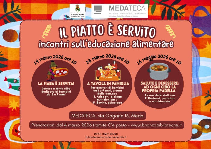 L'Assessorato alla Cultura e il personale della Medateca sono lieti di invitare la cittadinanza a un percorso di incontri sull'educazione alimentare.