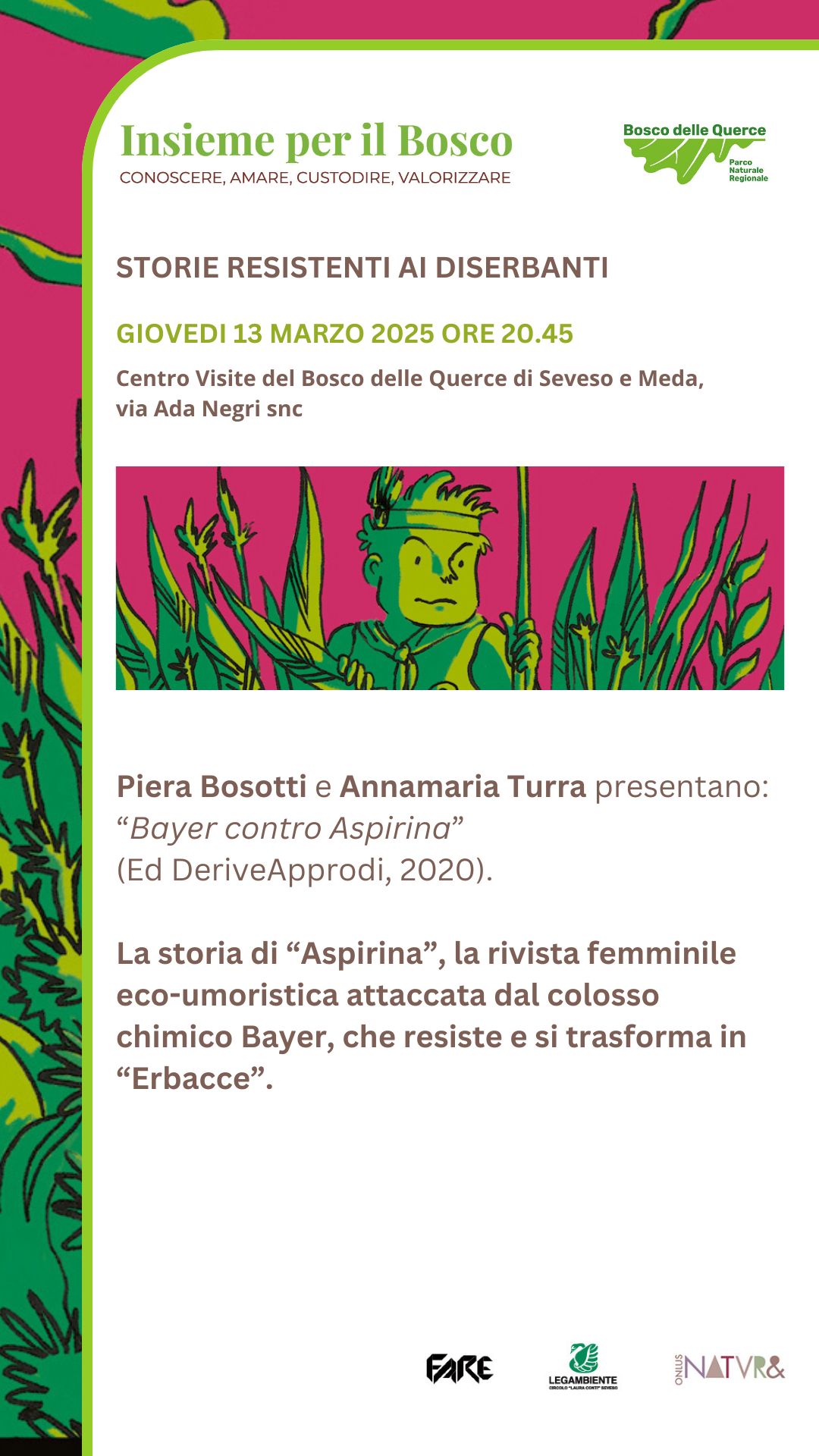 Piera Bosotti e Annamaria Turra ci conducono nel racconto della rivista femminile eco-umoristica “Erbacce. Forme resistenti ai diserbanti” e ci presentano il libro “Bayer contro Aspirina” (Ed DeriveApprodi, 2020).