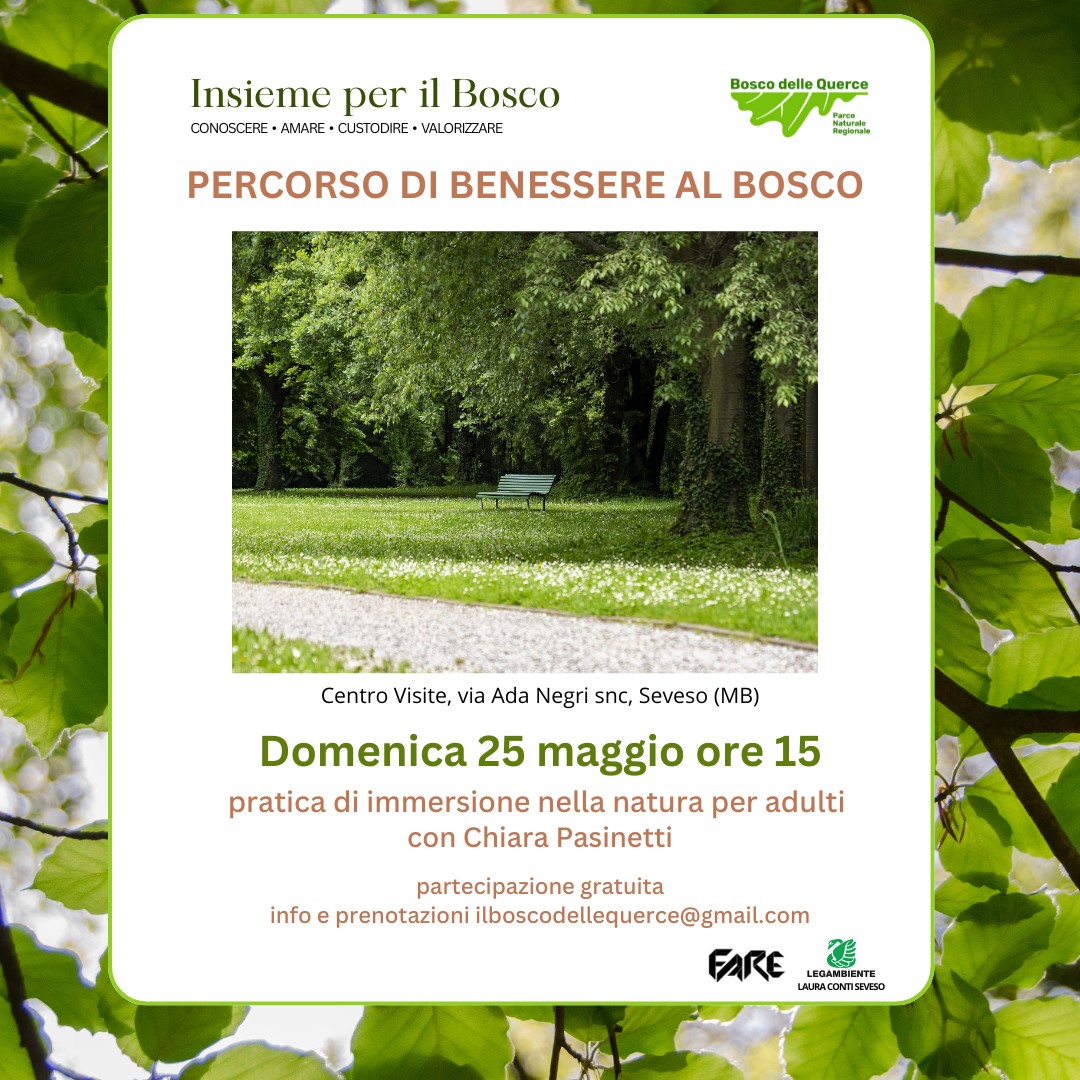 Lo Shinrin-Yoku, o Bagno di bosco, è una pratica nata in Giappone che esalta le proprietà salutari degli ambienti naturali. Studi e ricerche scientifiche ne riconoscono gli innumerevoli benefici fisici e mentali, tra cui la riduzione dello stress e l’aumento dello stato di rilassamento, oltre a una maggiore centratura, energia e stimolazione della capacità immaginativa e della creatività. Un percorso rivolto a persone adulte di circa un’ora e mezza durante il quale i sensi si apriranno permettendo alla natura di manifestarsi in sensazioni ed emozioni.