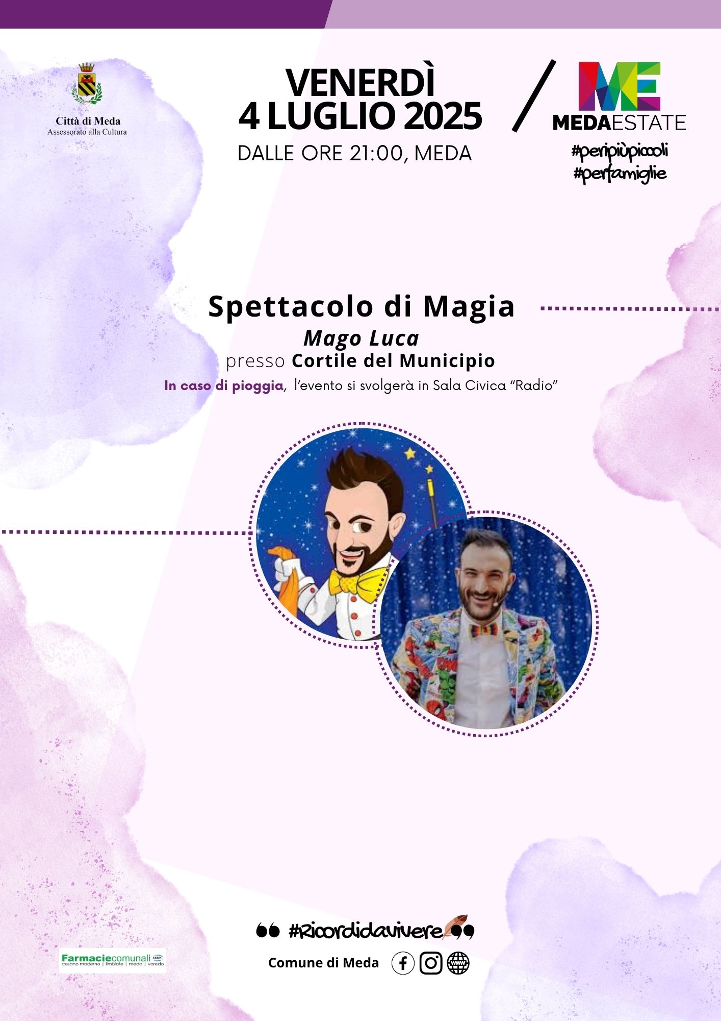 Descrizione Venerdì 4 luglio ore 21:00 Mago Luca Cortile del Municipio (in caso di pioggia Sala Civica "Radio" - v.lo comunale)