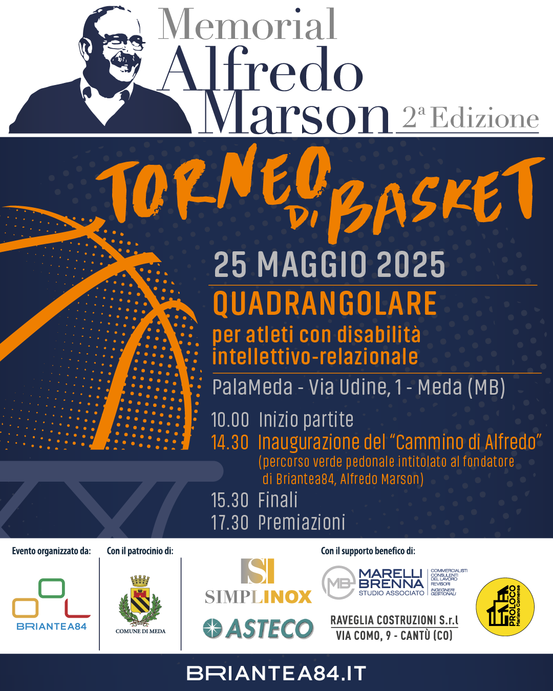 Torneo di Basket quadrangolare per atleti con disabilità intellettivo-relazionale organizzato dalla società sportiva Briantea84 presso il Palazzetto dello Sport Palameda dalle ore 10:00 alle ore 17:00, h. 17:30 premiazioni.