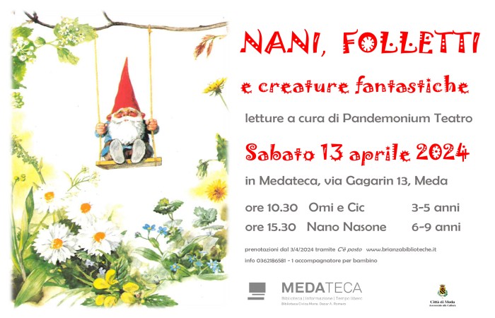 L'Assessorato alla Cultura e il personale della Medateca sono lieti di invitare lbambine e bambini dai 3 ai 9 anni a partecipare alle letture a cura di Pandemonium Teatro.