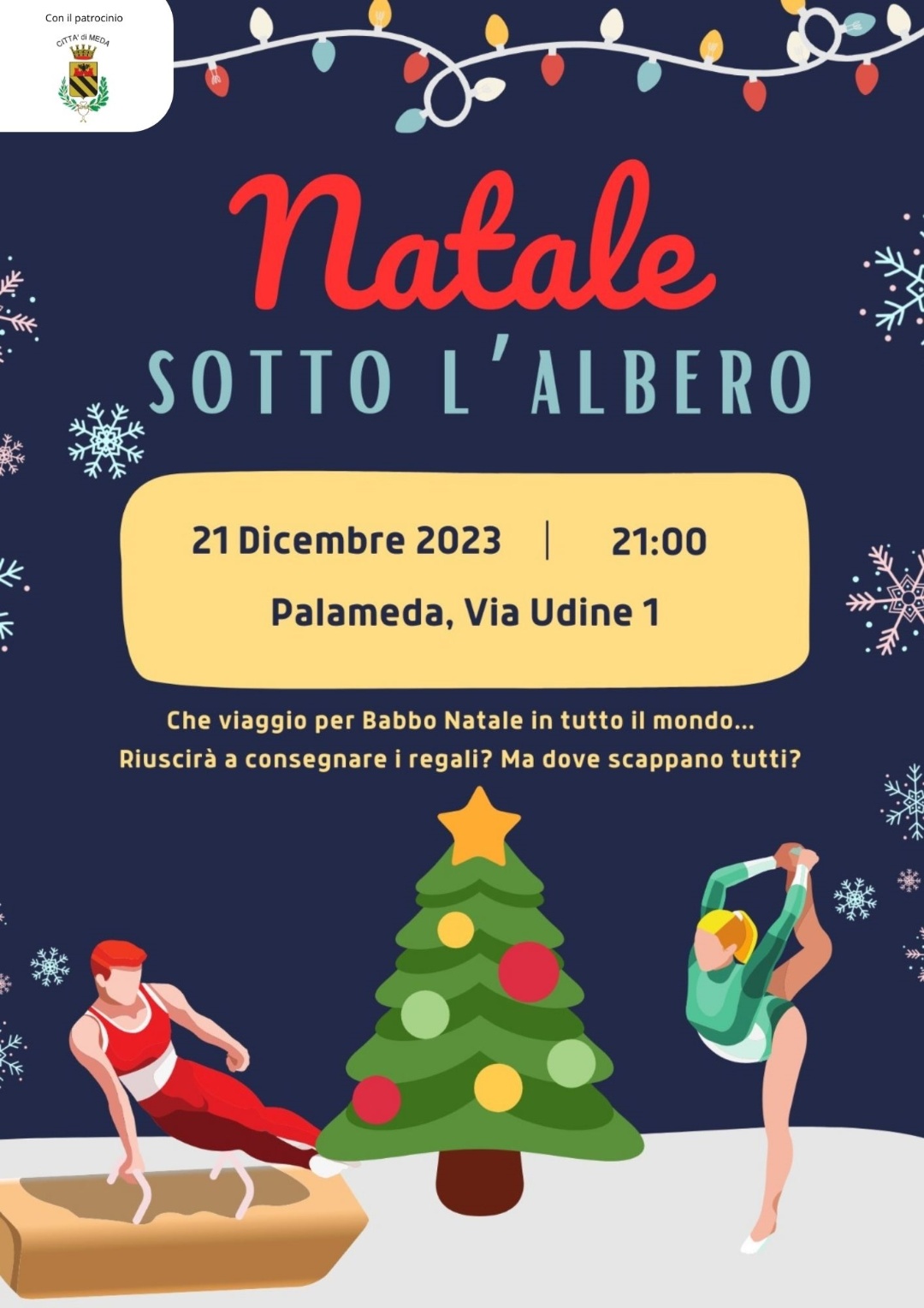 Evento a cura della Ginnastica Meda asd Torna l'appuntamento di Natale con i Ginnasti, giovedì 21 dicembre 2023 ore 20:30 al Palazzetto Palameda. Ingresso libero.
