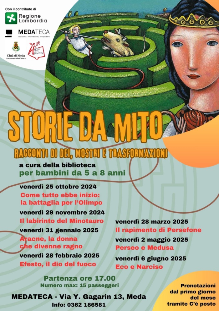 L'Assessorato alla Cultura e il personale della Medateca sono lieti di invitare i piccoli lettori a un percorso di scoperta del mito, attraverso la lettura di alcuni testi.