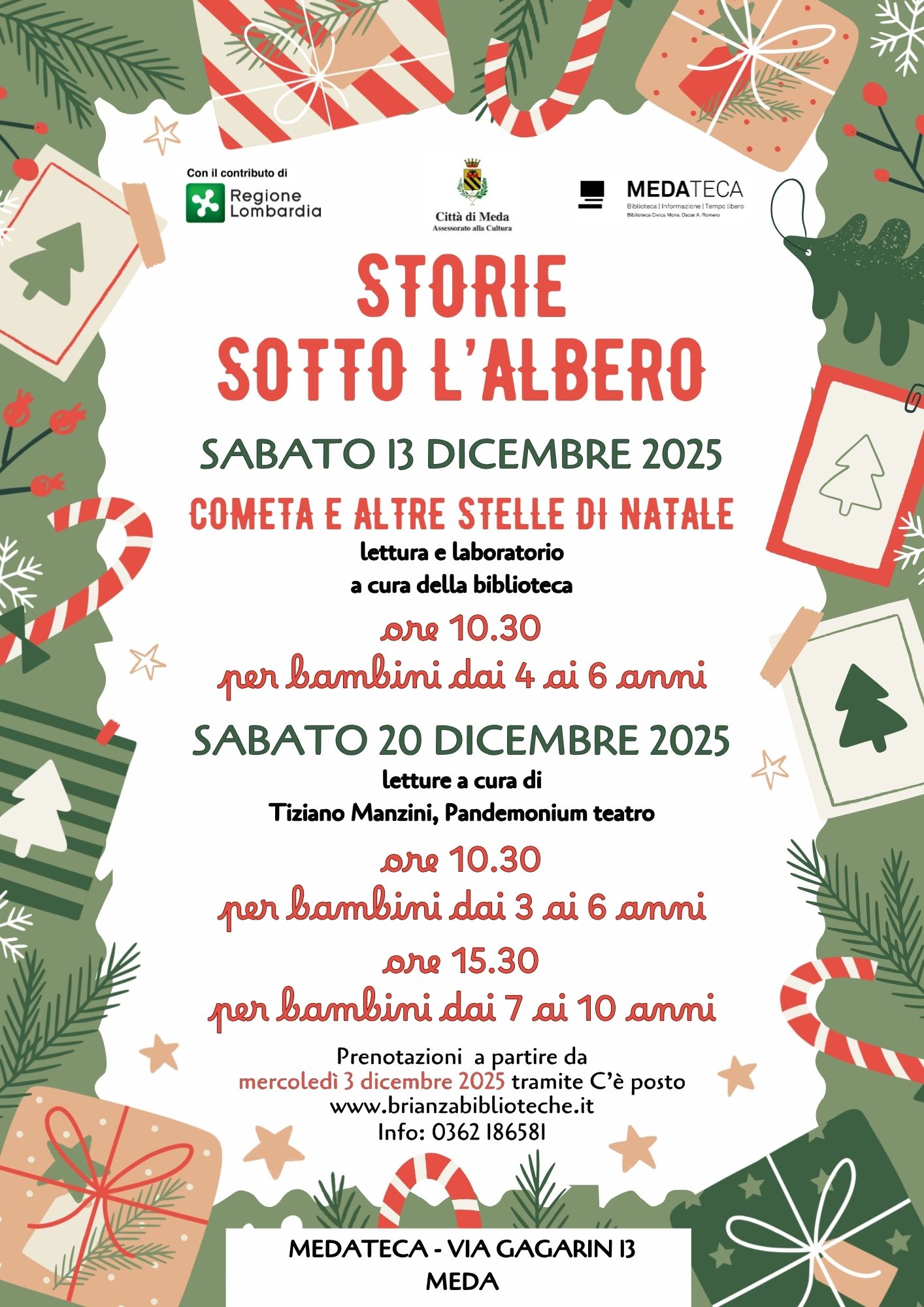 Descrizione L'Assessorato alla Cultura e il personale della Medateca sono lieti di invitare bambine e bambini da 4 a 6 anni per la lettura e laboratorio "Cometa e altre Stelle di Natale"