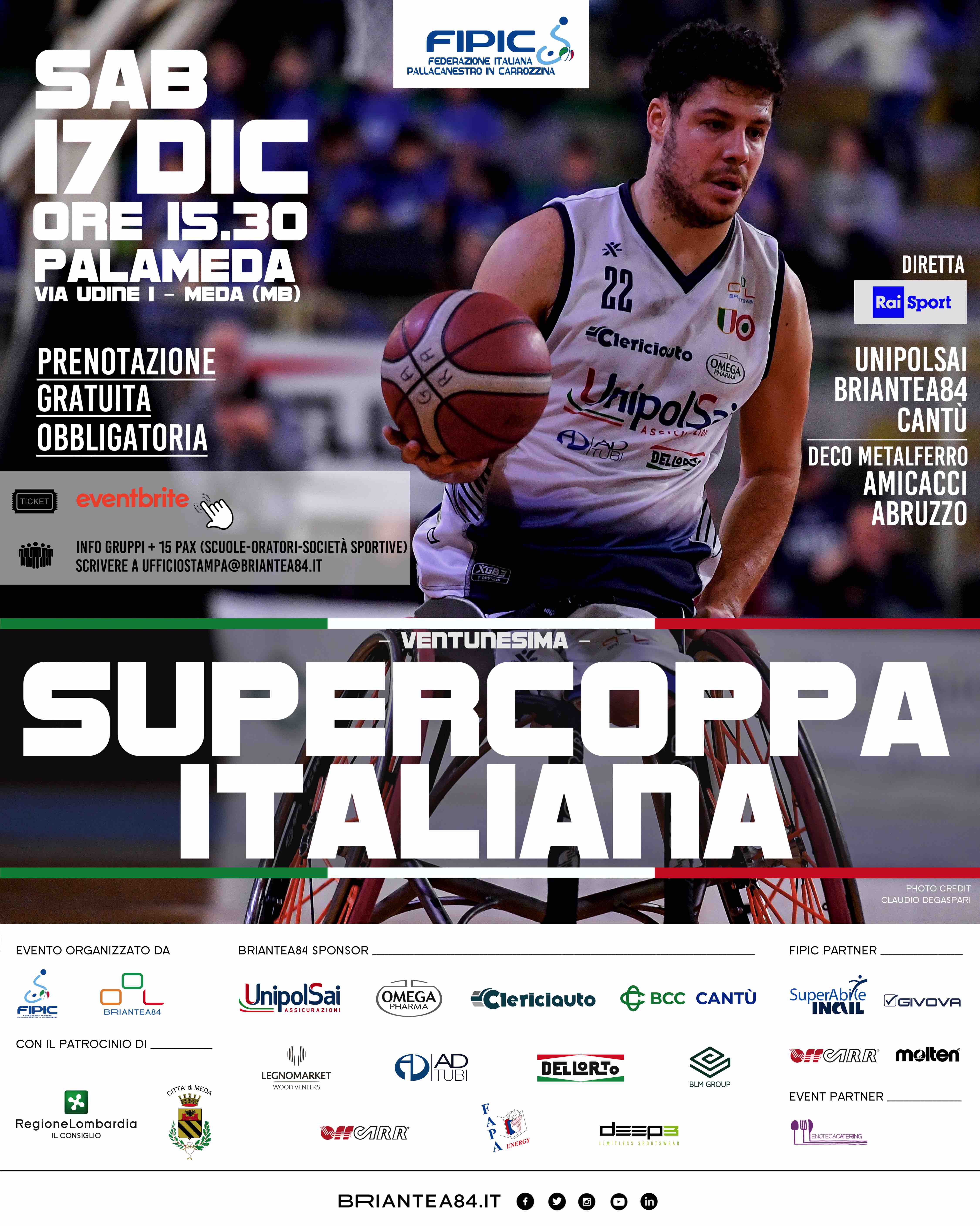 Sabato 17 dicembre 2022 alle ore 15:30 il Palameda ospiterà la XXI edizione della Supercoppa Italiana di basket in carrozzina organizzata dalla FIPIC.