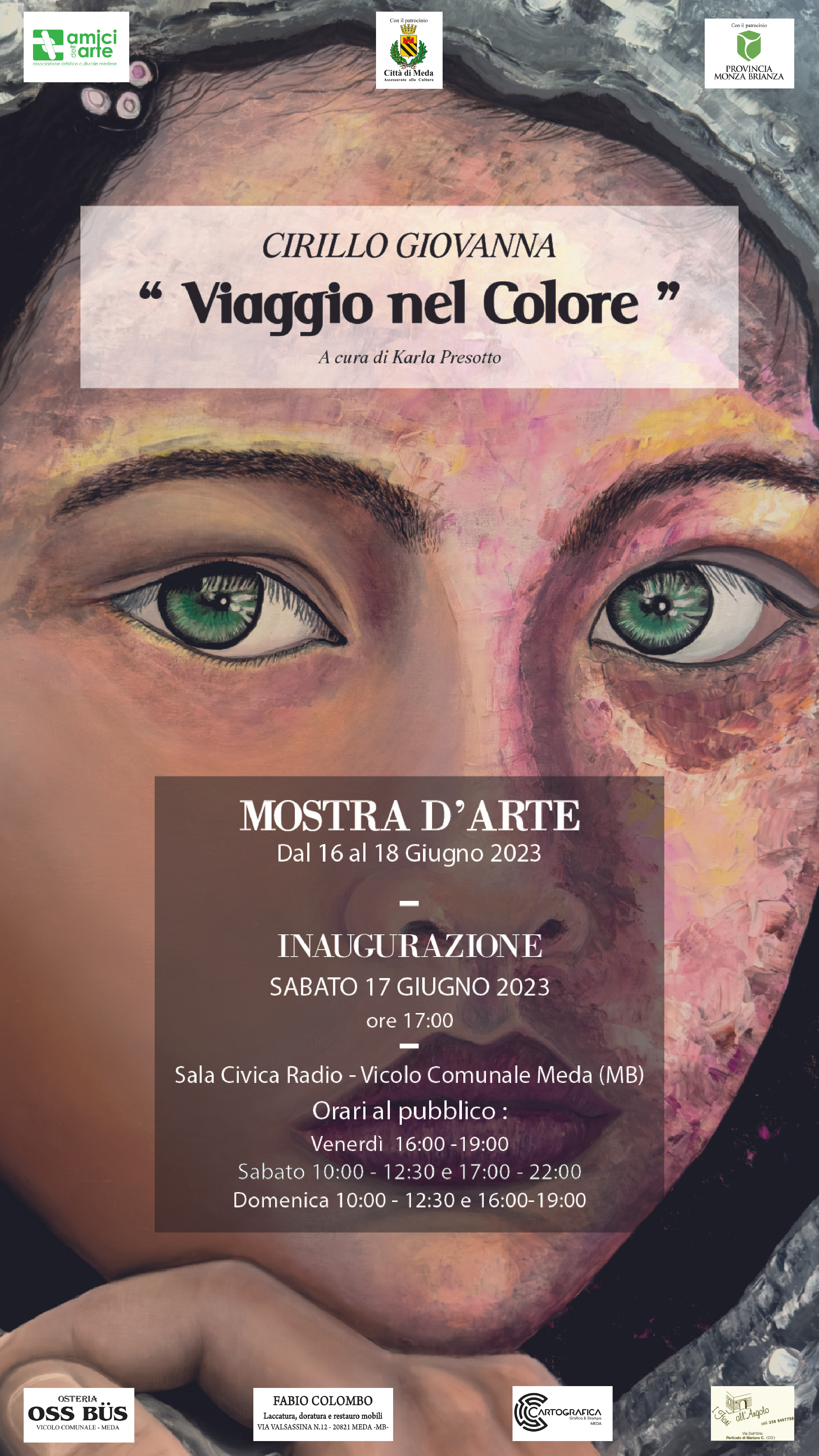 L'Assessorato alla Cultura e l'Associazione "Amici dell'Arte" sono lieti di invitare la cittadinanza all'inaugurazione della mostra personale dell'artista Giovanna Cirillo, intitolata "Viaggio nel colore".
