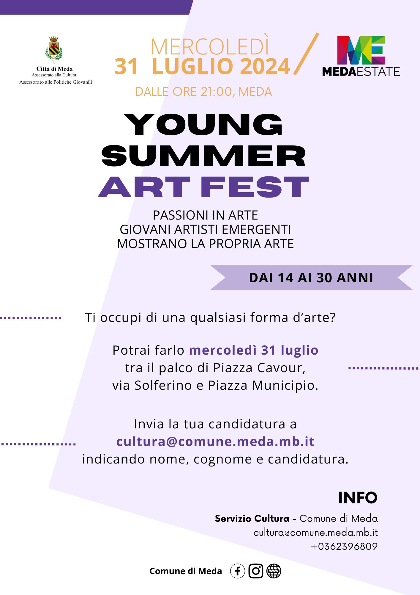 Per informazioni: tel. 0362 1865809 / e-mail cultura@comune.meda.mb.it