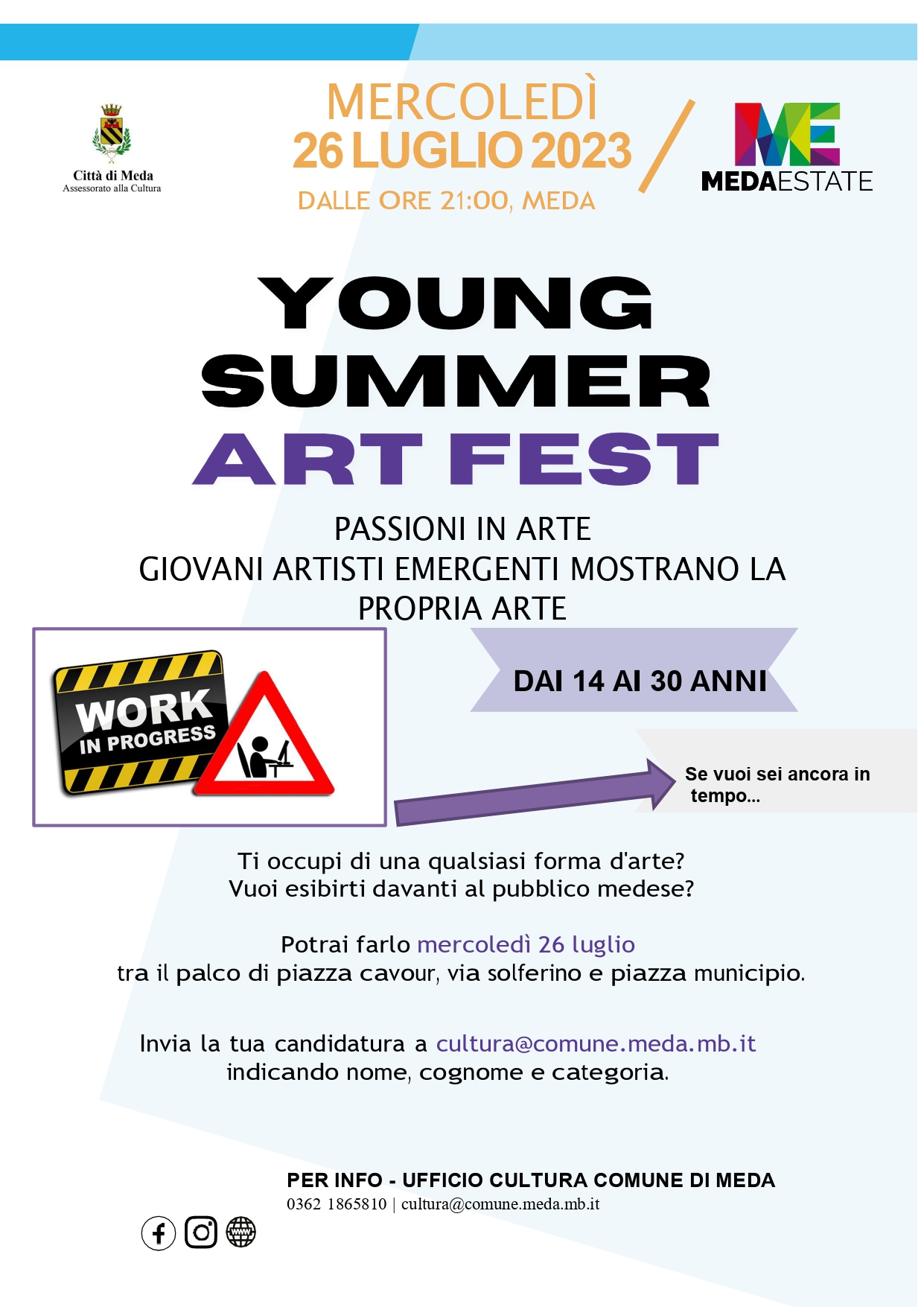 A Meda, in occasione dei mercoledì di MEDAestate, il 26 luglio dalle ore 21.00 arriva lo Young Summer Art Fest